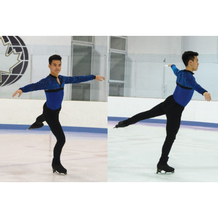 Royal matte shirt with split collar, and horizontal stripe in black with a subtle silver diamond thatch velvet across the shoulders and down the sleeves.