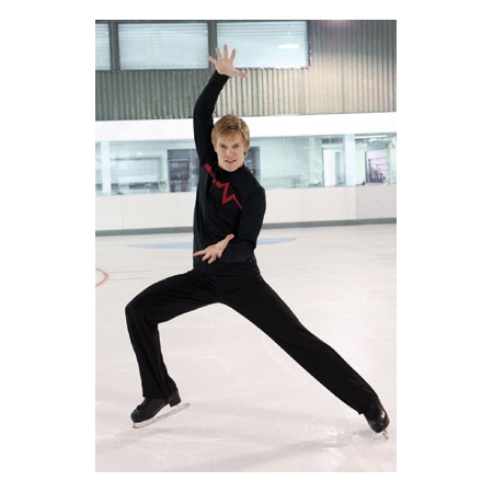 Black front zip sport jacket with red contrast stripe that spikes on one side.
