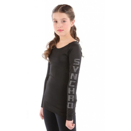 Black Long Sleeved Training Shirt with Rhinestones Pattern SYNCHRO