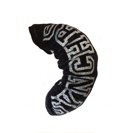 Black plush blade covers with sparkly silver `SYNCHRO`. An Edith Adams Original. One Size